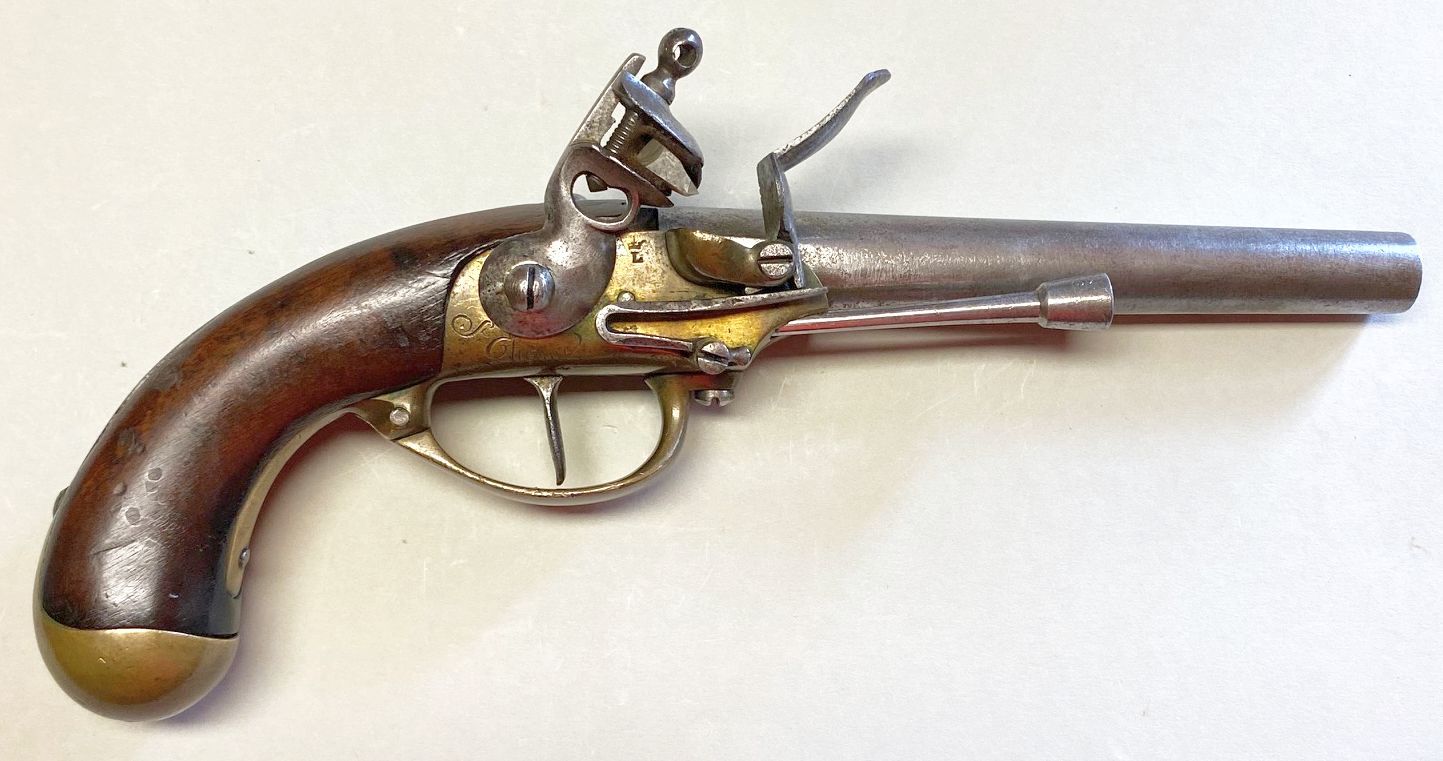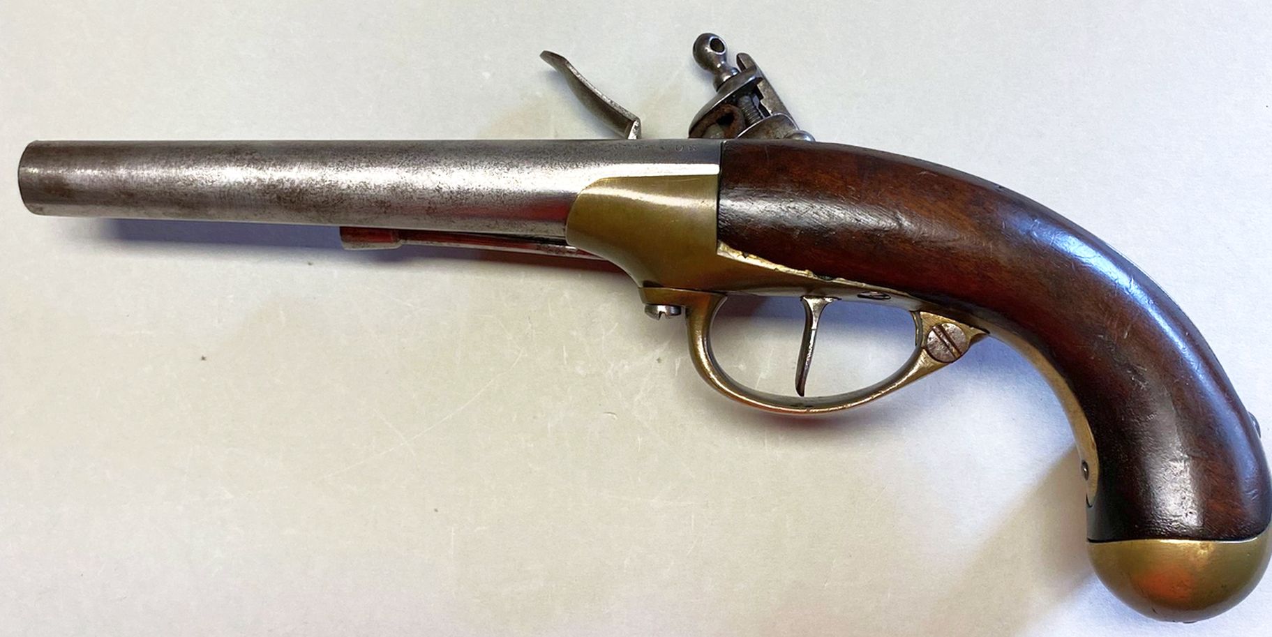Von der Kavalleriepistole 1777 wurden zusammen mit dem 1. Modell, das im Gegensatz zum hier vorgestellten Muster noch über einen Gürtelhaken verfügte, welcher bei der zweiten Variante weggelassen wurde, sind in nicht einmal ganz 10 Jahren 37.000 Paare gefertigt worden.Die Produktion der Gürtelhakenvariante endete 1784 und belief sich auf insgesamt 34.377 Paare. Von der zweiten, hakenlosen Variante, deren Fertigung, 1784 begann und 1787 endete, sind in St. Etienne 2.619 und in Charleville gerade einmal 300 Paare gefertigt worden – zusammen also nur 2.919 Paare. Dies verdeutlicht anschaulich den Seltenheitsgrad des 2. Modells der Pistole 1777. Die hier angebotene Pistole hat ganz offensichtlich bei einer Reparatur den Lauf eines 1. Modells erhalten, die Jahreszahl „80“ der Fertigung am Lauf belegt dies eindeutig, weil das zweite Modell erst ab 1784 gefertigt worden ist.