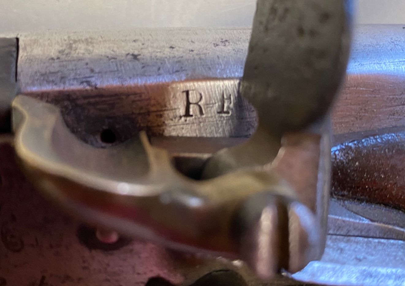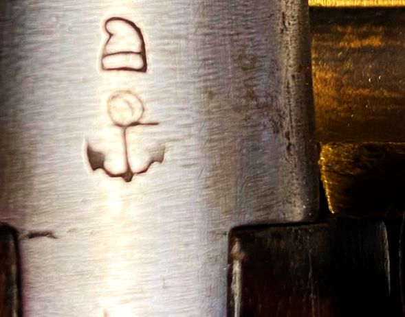Die hier vorgestellte Pistole trägt auf dem Lauf über einem Anker das Symbol der französischen Revolution, die „phrygische Mütze“, die aus Filz oder Wollstoff gefertigte „Bonnet Rouge“. Die Jakobiner und Sansculotten trugen sie seit 1792, sie zierte als Emblem das Staatssiegel der Französischen Republik und sie schmückte neben Feuerwaffen auch "revolutionäre" Säbel und Freiheitsbäume ebenso wie Tassen und Teller.Die hie angebotene Pistole dürfte auf die private Bestellung eines revolutionär gesinnten Marineoffiziers bei der Manufaktur St. Etienne zurückgehen, wo sie noch vor der revolutionären Aufhebung der staatlichen Ordnung des Jahres 1793 gefertigt wurde. Dies wird belegt durch den am Schloss vorhandenen Stempel eines Kontrolleurs. Da nach dem November 1793 eine effektive Arbeit in den Staatsmanufakturen, die bisher in ein streng überwachtes Kontrollsystem eingebunden waren, nicht mehr möglich war, weil sich die Belegschaften in revolutionärem Überschwang weigerten, sich weiterhin staatlicher Kontrolle zu unterwerfen, wurden danach gefertigte Waffen auch keiner Kontrolle mehr unterzogen.